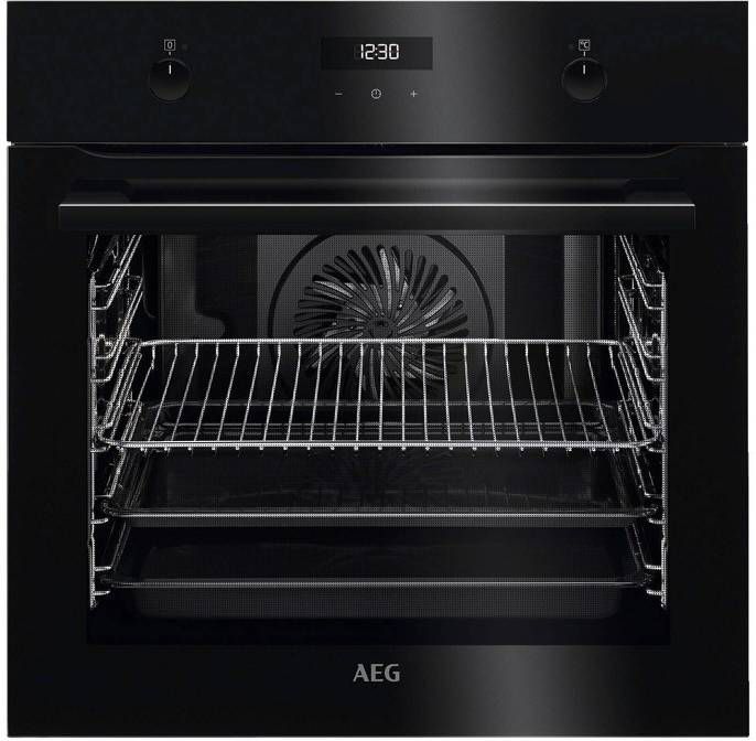De AEG BEE435060B SurroundCook Heteluchtoven is een toegankelijke multifunctionele oven met indrukbare bedieningsknoppen, Easy2Clean bakplaat en een IsoFront Plus koele ovendeur.
