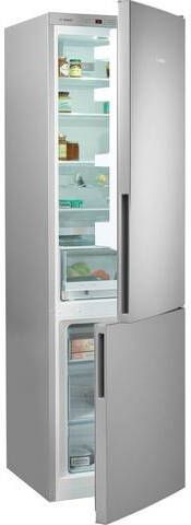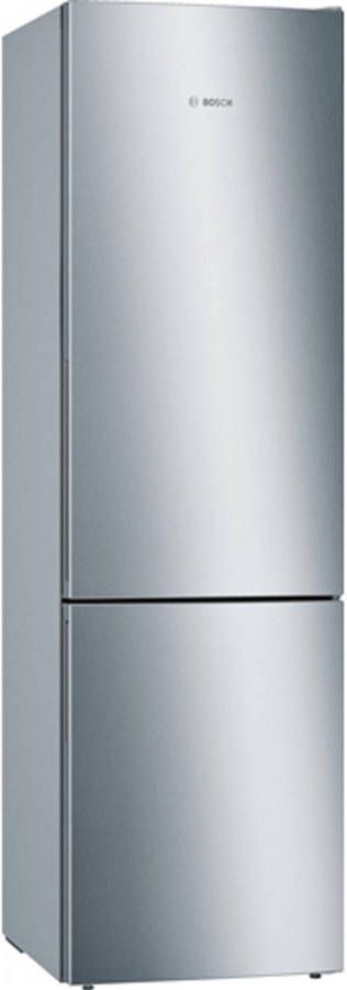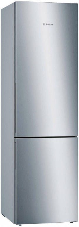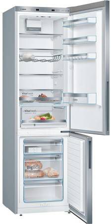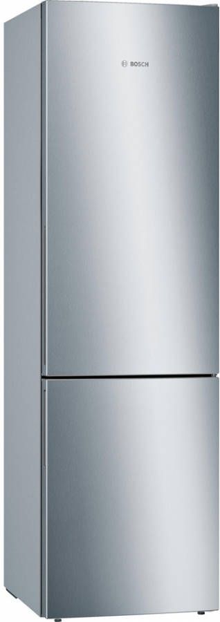 De Bosch koel vriescombinatie KGE39ALCA heeft drie ruime vrieslades waaronder een BigBox voor een stapel pizza's, een ijstaart of een groot braadstuk. Dankzij de LowFrost technologie komt ijsvorming bijna niet voor en is ontdooien zelden nodig. De invriescapaciteit bedraagt 14 kilo per 24 uur en als de stroom een keer uitvalt kun je al je diepvriesvoorraden nog 35 uur goed bewaren. Speciale sensoren zorgen voor een constante temperatuur, en dat komt de smaak en versheid van je groente zeker ten goede. Als er producten ongekoeld in de koelkast worden gezet, zoals wanneer je boodschappen hebt gehaald, zorgt de Bosch koel vriescombinatie KGE39ALCA met de functie Super-koelen dat alles snel afkoelt en de temperatuur niet oploopt. Deze functie schakelt automatisch uit na enkele uren of als de gewenste temperatuur bereikt is. Wie de Bosch koel vriescombinatie KGE39ALCA koopt, haalt een fantastisch presterende koelkast in huis met voldoende ruimte voor de levensmiddelen voor een meerpersoonshuishouden. Van de Bosch koel vriescombinatie KGE39ALCA kun je jarenlang plezier hebben.Bosch KGE39ALCA koel/vries combinatie