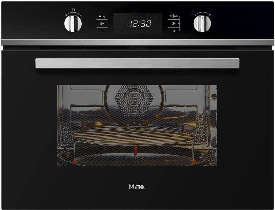 Type: Combimagnetron Nishoogte: 45 cm Nisbreedte: 56 cm IKEA-geschikt: Ja Vermogen: 900 W De Etna Cm244Zt is een combimagnetron met een inhoud van 44 liter. Dankzij de magnetronfuncties en de verschillende ovenfuncties kan je zowel restjes eten opwarmen als een gerecht of gebak afbakken. Deze combimagnetron is voorzien van 13 automatische kookprogramma's, 5 magnetronstanden, 2 ontdooiprogramma's en 4 combinatiestanden. Daarnaast heb je de keuze uit een turbo-heteluchtfunctie, onder- en bovenwarmte en grill. Met deze combimagnetron kun je dus verschillende soorten gerechten bereiden. Bovendien heeft de Cm244Zt verschillende inschuifhoogtes, zodat je meerdere gerechten tegelijkertijd kunt maken. Met de 2 draaiknoppen en de tiptoetsen op het scherm selecteer je eenvoudig de gewenst functies. Op het display heb je overzicht op de tijd, temperatuur, het vermogen en verschillende functies. Dit zit in de verpakking: Combi-magnetron, kabel, draaiplateau, laag draaiplateau rek, 1 grillrooster, installatieset en een gebruikershandleiding.